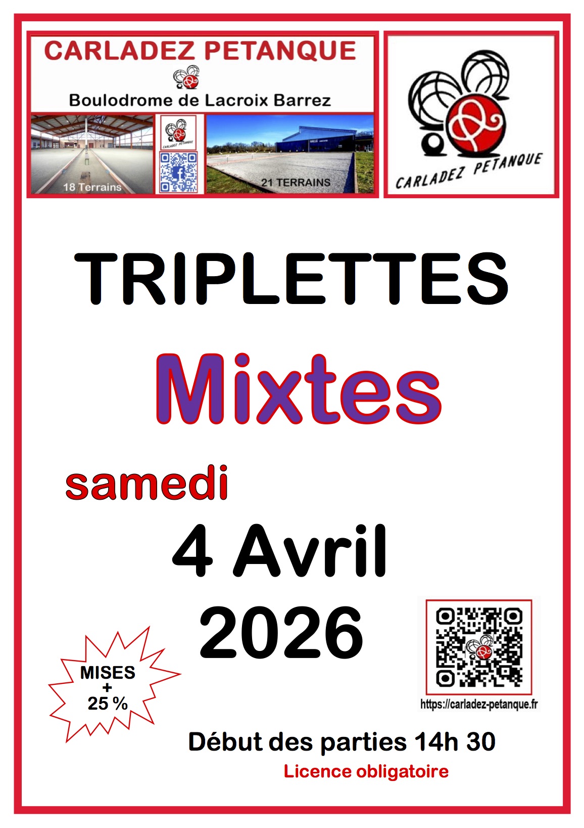 * * * POUR TOUS LES CONCOURS : si vous avez du retard ou ne pouvez pas venir, merci de nous prévenir - Téléphone du boulodrome : 05 65 44 16 78 à partir de 13h 45 le jour du concours...